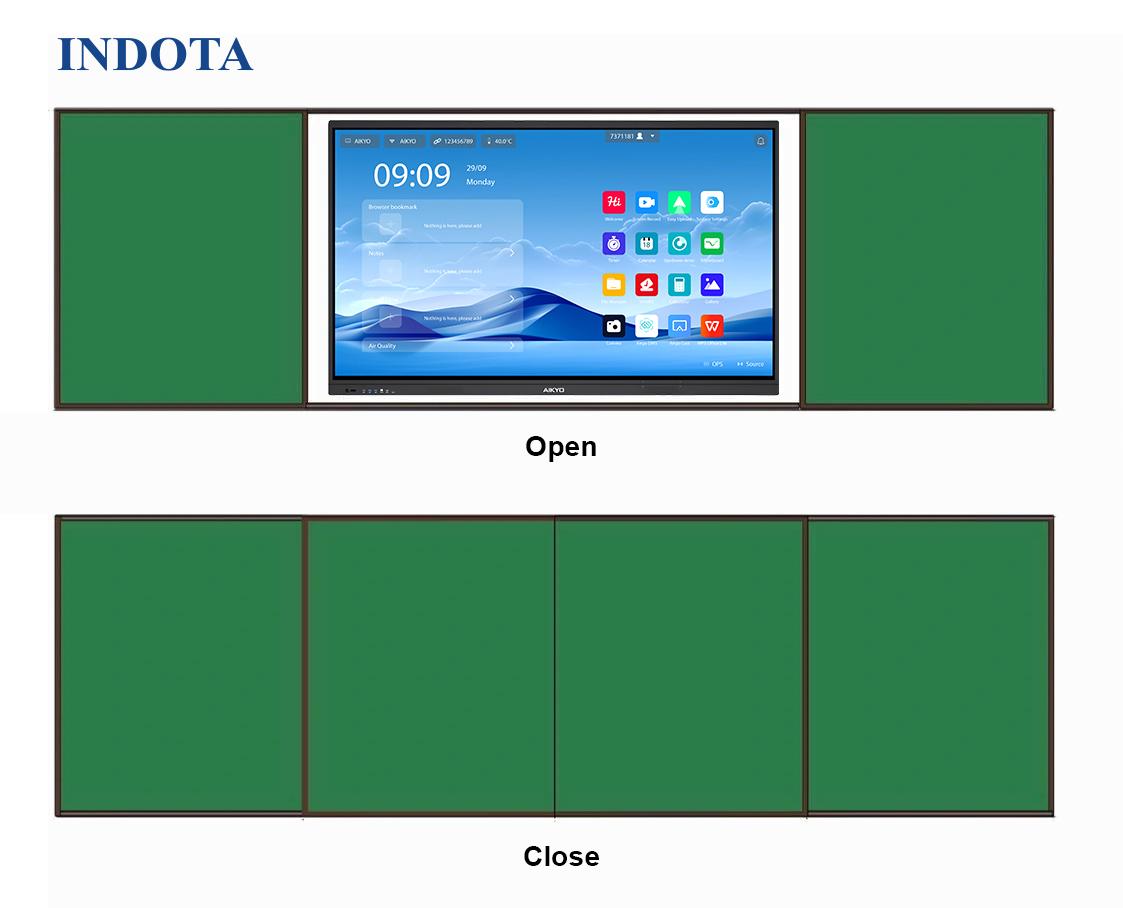 Bảng trượt ngang INDOTA IN5575 được trang bị giá treo thép mạ kẽm điện phân, có thể điều chỉnh độ dày để phù hợp với mọi loại màn hình tương tác hoặc TV chuyên dụng. Đây là lựa chọn lý tưởng cho: