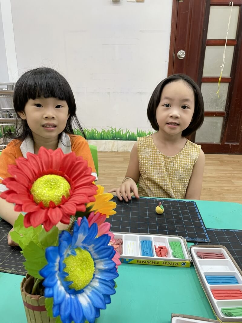 Trẻ biết nặn quả cam có các bộ phận: quả, cuống, lá bằng cách xoay tròn, lăn dọc, ấn dẹt.